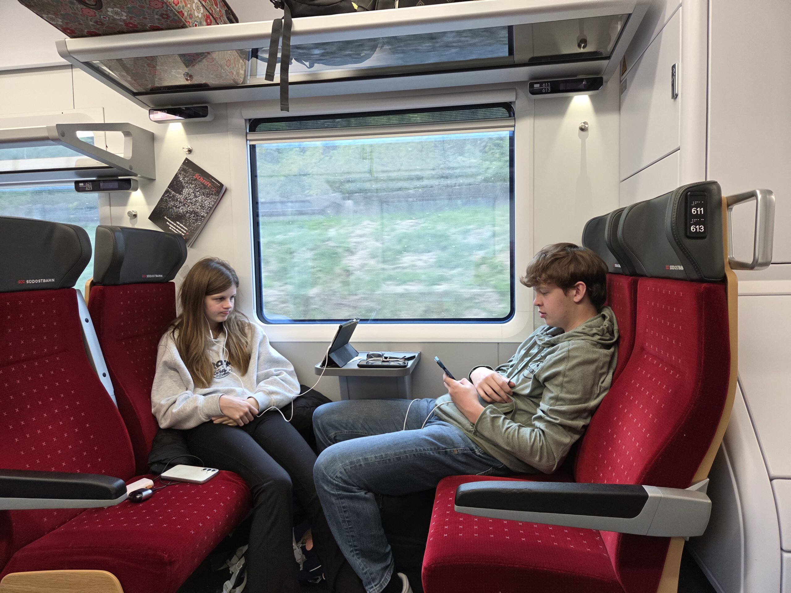 Premiere: Wir fahren mit dem Zug in Urlaub. Kilian hat zwar erst Befindlichkeiten, als ginge es mit dem Stadtbus durch Bombay, tatsächlich fahren wir aber möglichst komfortabel - also mit wenig Umsteigen - nach Locarno am Lago Maggiore. Zuerst war übrigens Westerland auf Sylt im Rennen. Aber da Fahrt und Unterkunft gen Süden an der Kostenfront identisch waren, das Wetter in der wärmsten Stadt der Schweiz jedoch knapp 20 Grad verspricht ...