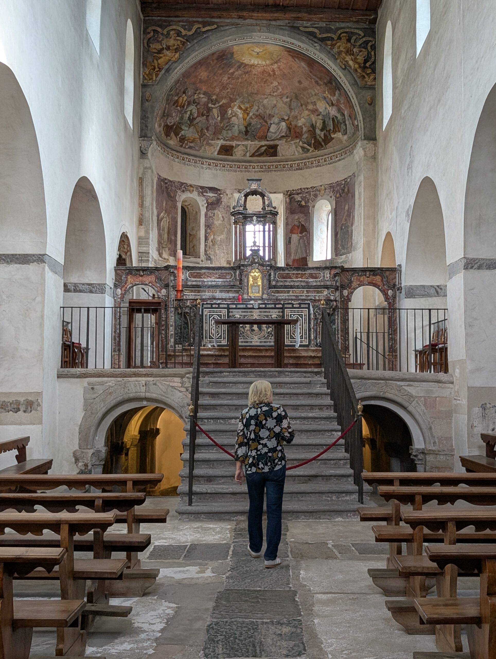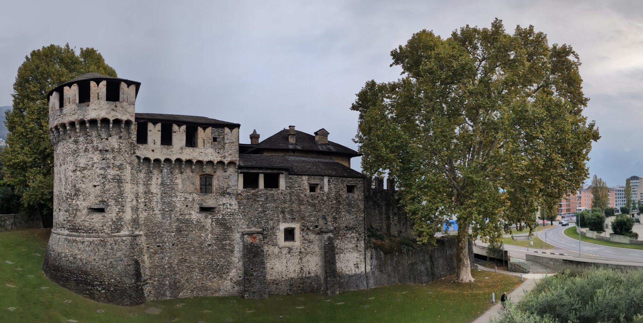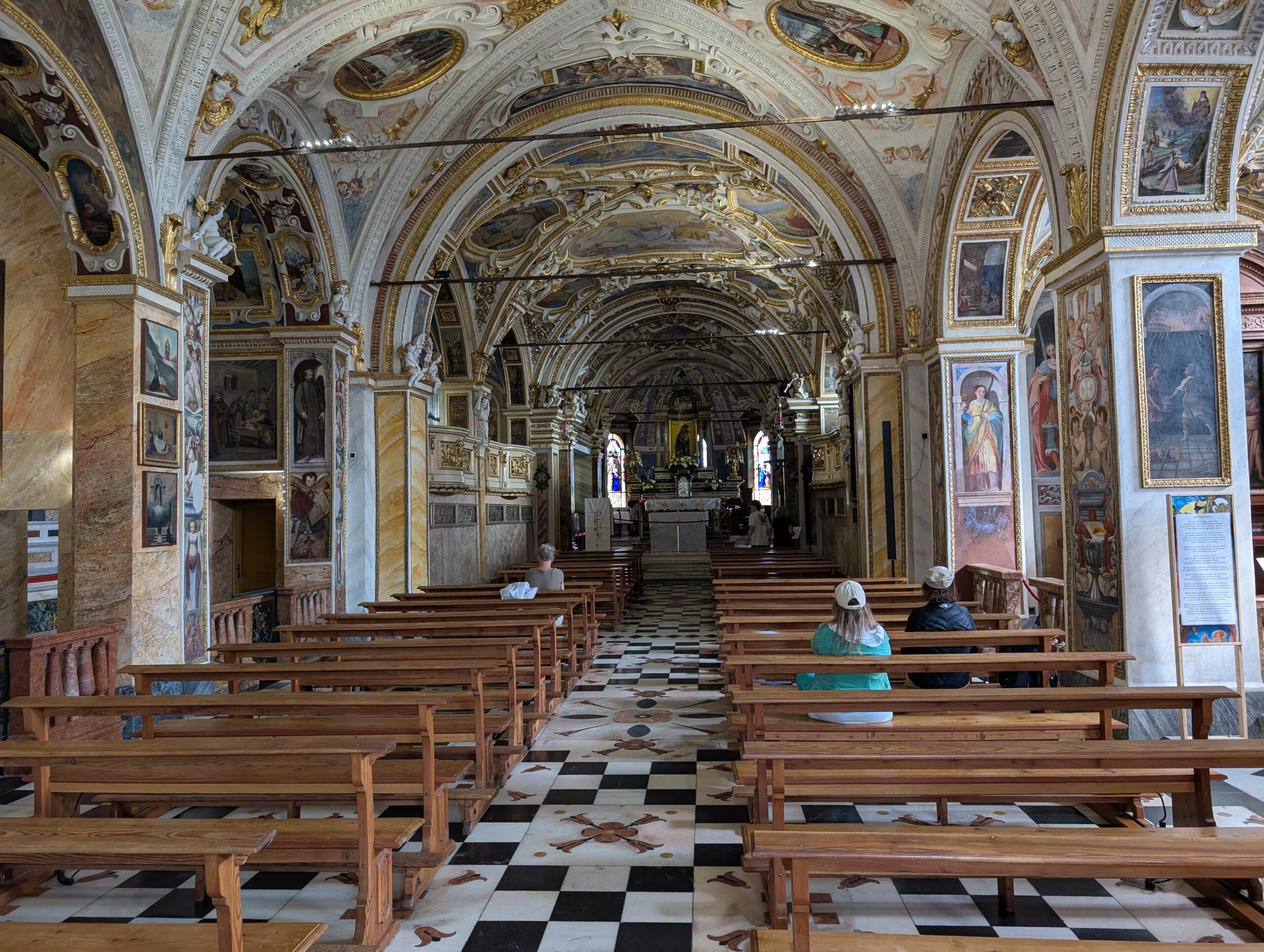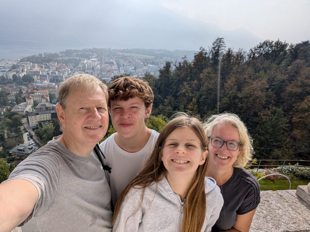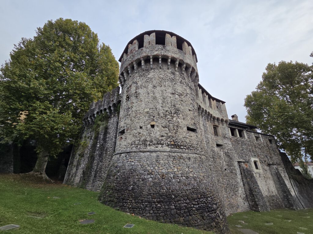 Kein Regen, aber ein trüber Sonntag. Wir starten gemütlich und verlassen das Haus erst spät. Eine Runde durch den Teil der Innenstadt, den wir noch nicht gesehen haben. Vorbei am Schloss und durch drei Kirchen. Wir lernen: Wenn sich die Reiseleitung in einem Restaurant höflich auf Italienisch nach einer Toilette erkundigt, dann ist das überhaupt kein Problem. Die Straßen sind menschenleer und wir fragen uns, wo die Bewohner von Locarno wohl stecken. Alle beim Kastanienfest bei der Wallfahrtskirche?
