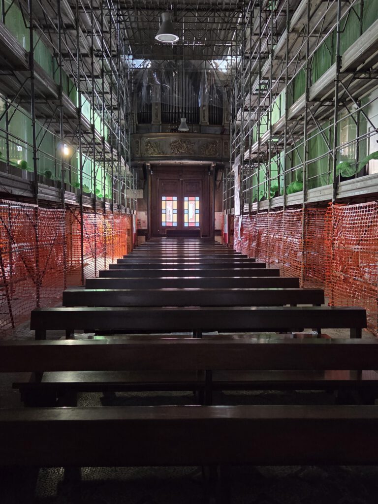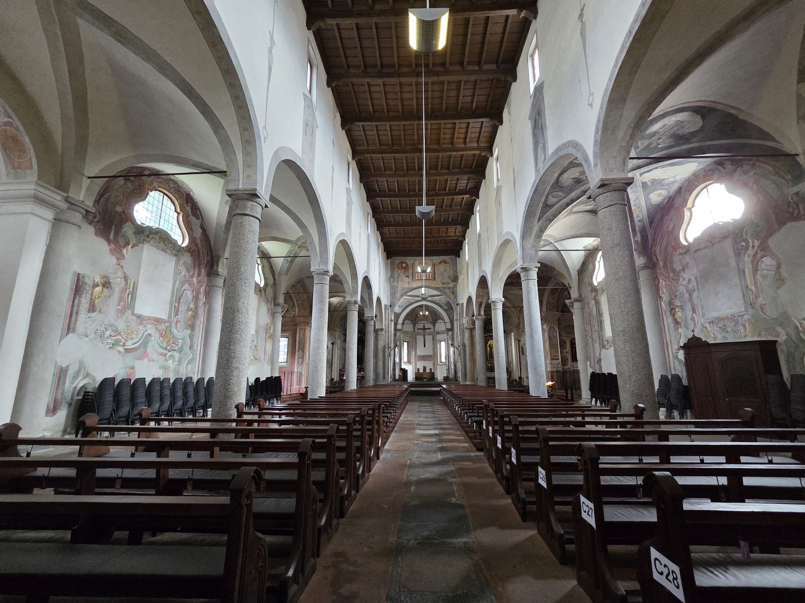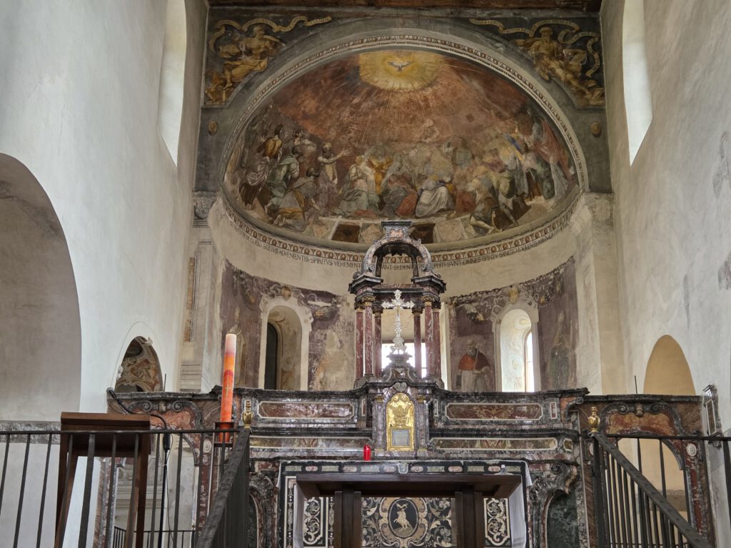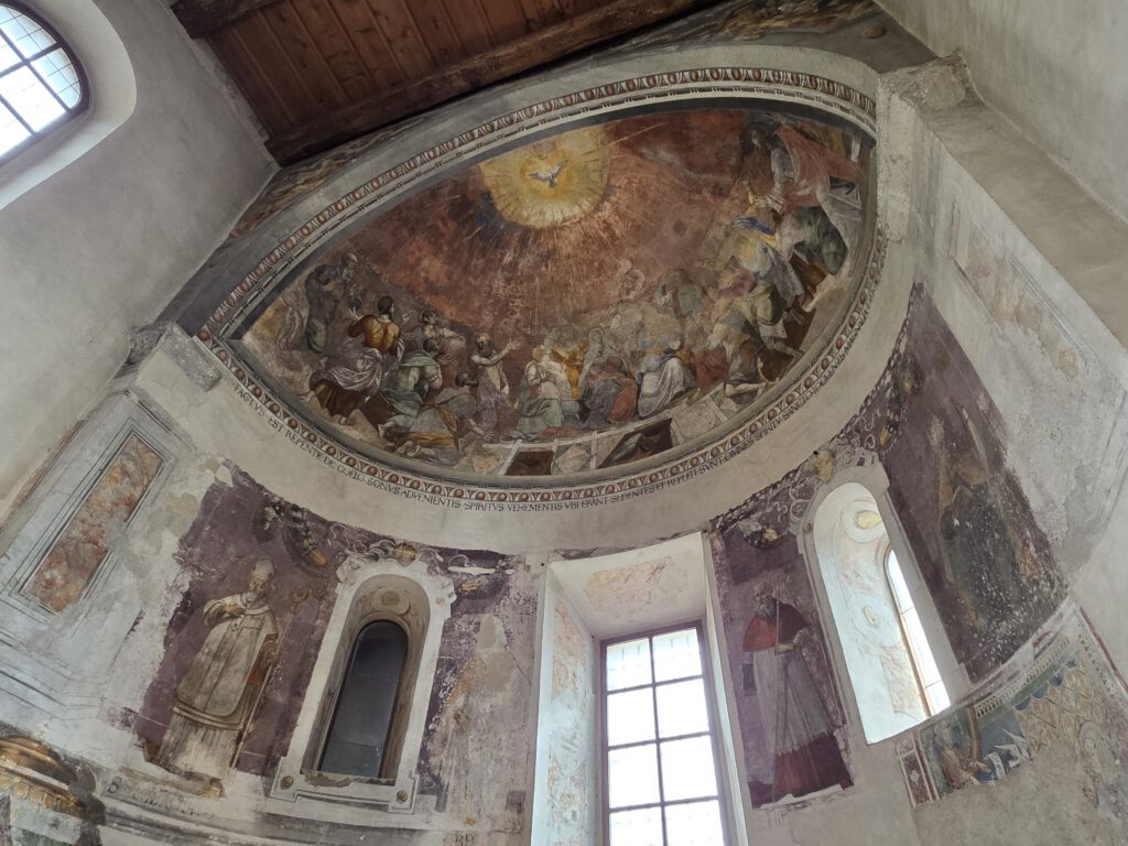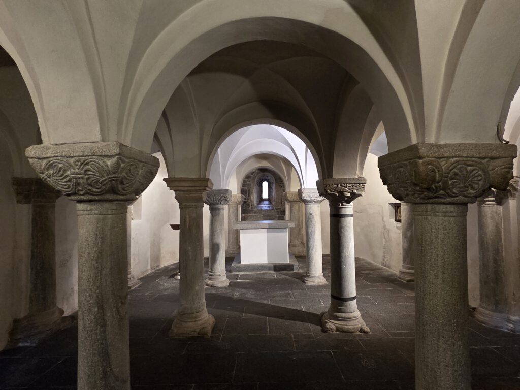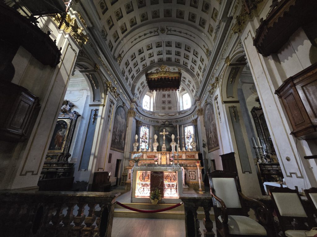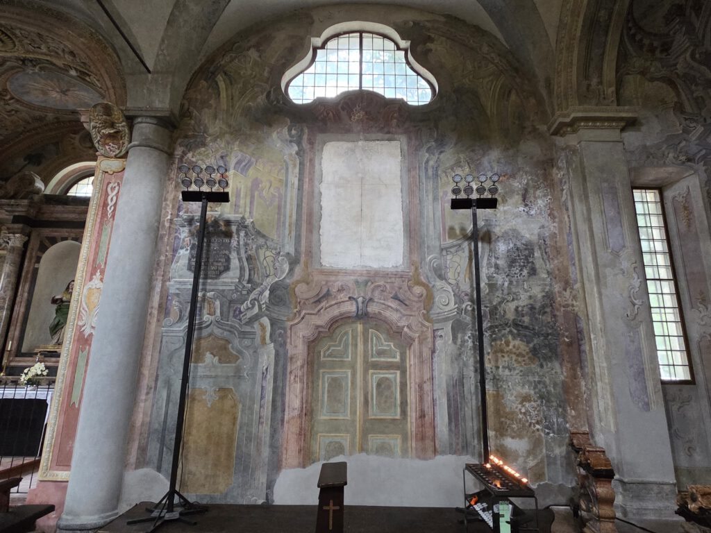 Kein Regen, aber ein trüber Sonntag. Wir starten gemütlich und verlassen das Haus erst spät. Eine Runde durch den Teil der Innenstadt, den wir noch nicht gesehen haben. Vorbei am Schloss und durch drei Kirchen. Wir lernen: Wenn sich die Reiseleitung in einem Restaurant höflich auf Italienisch nach einer Toilette erkundigt, dann ist das überhaupt kein Problem. Die Straßen sind menschenleer und wir fragen uns, wo die Bewohner von Locarno wohl stecken. Alle beim Kastanienfest bei der Wallfahrtskirche?