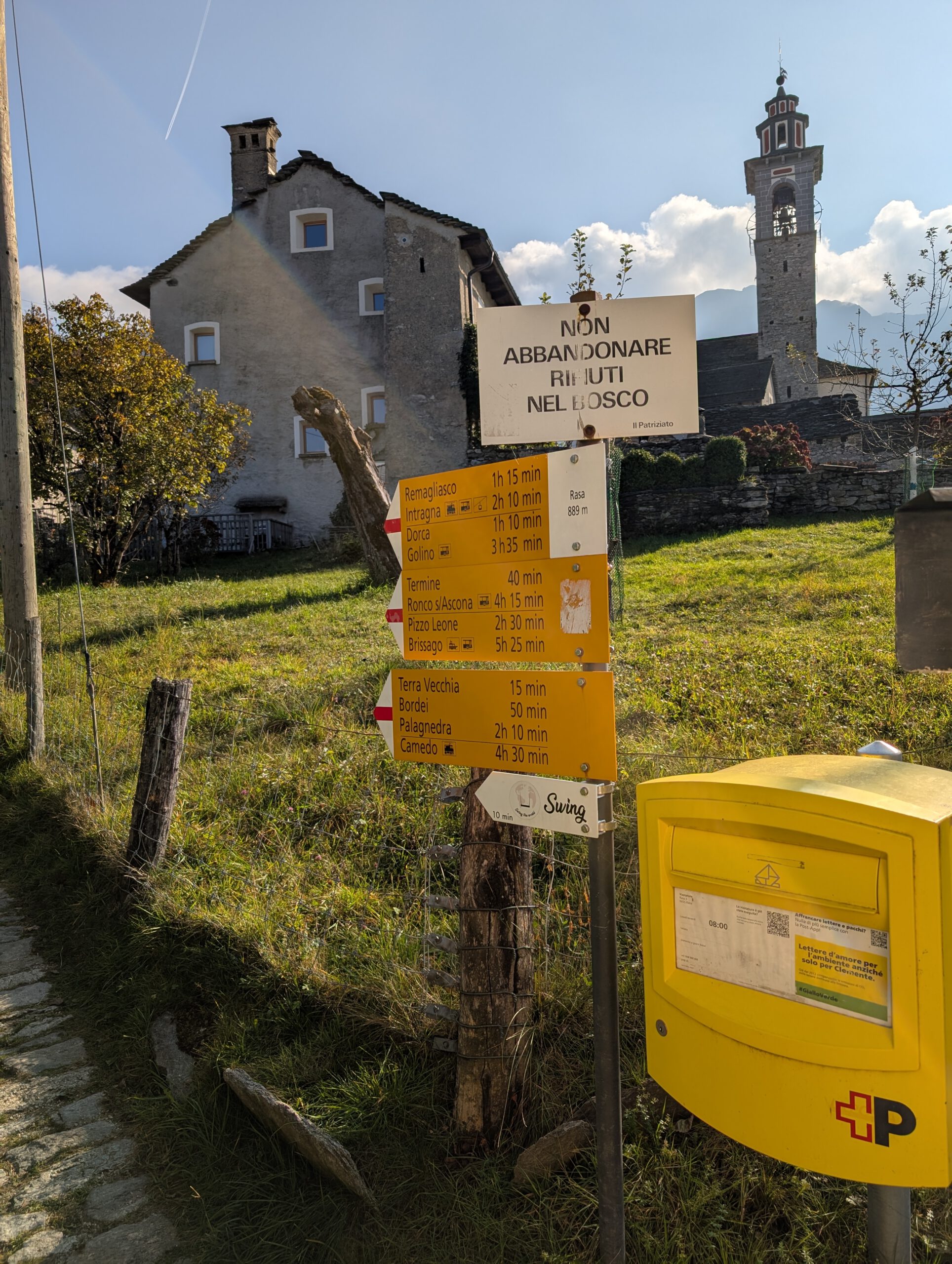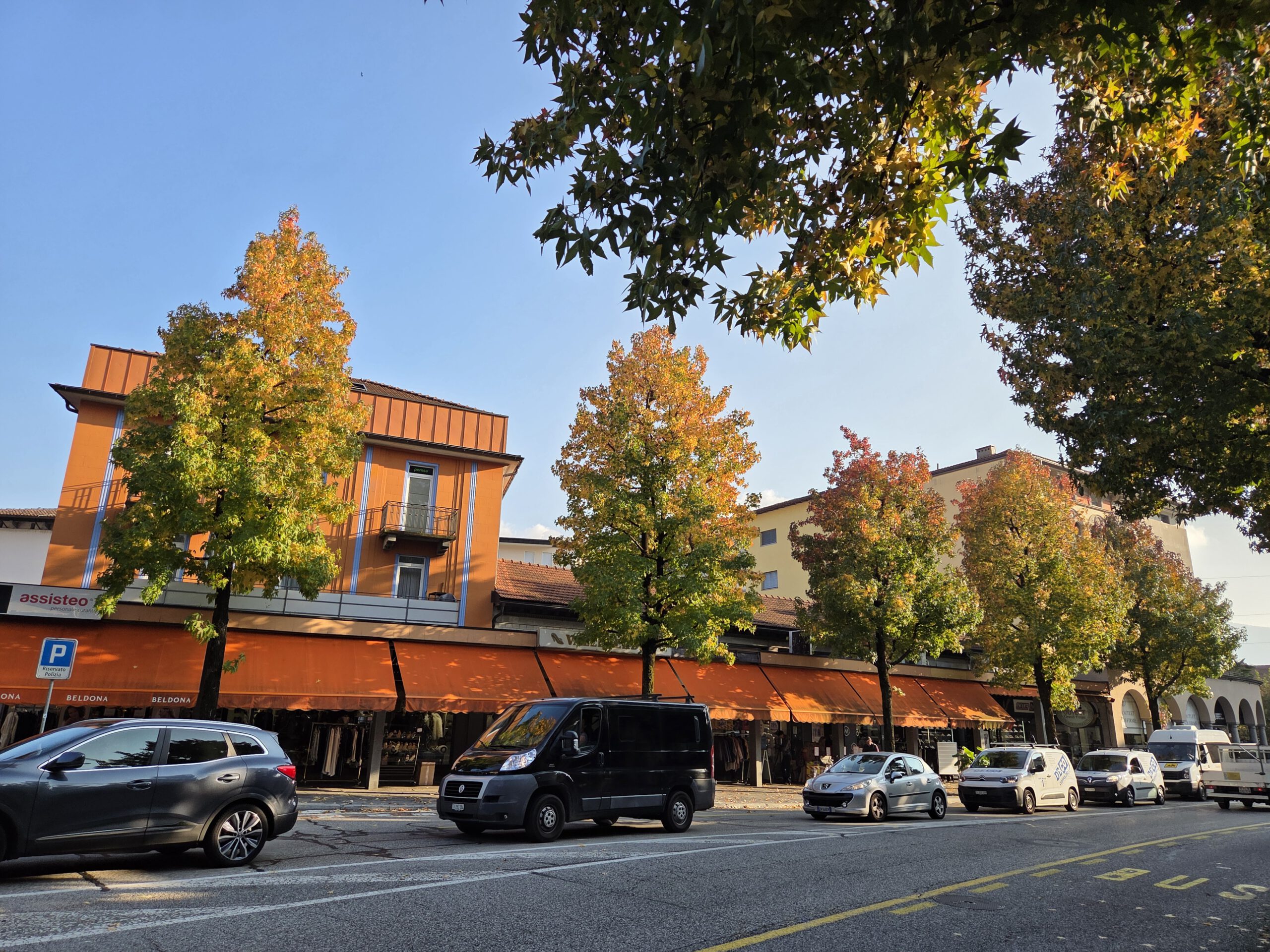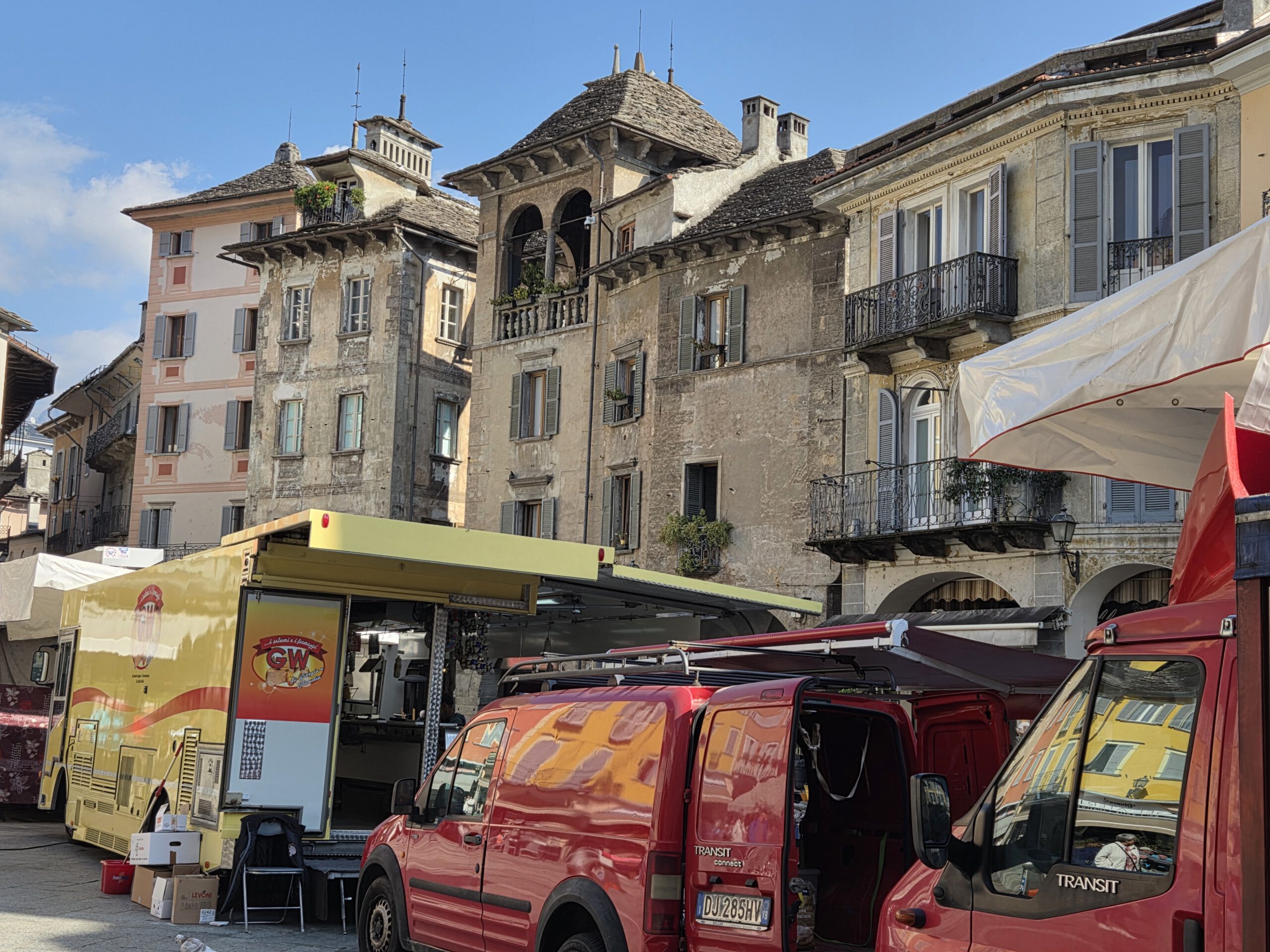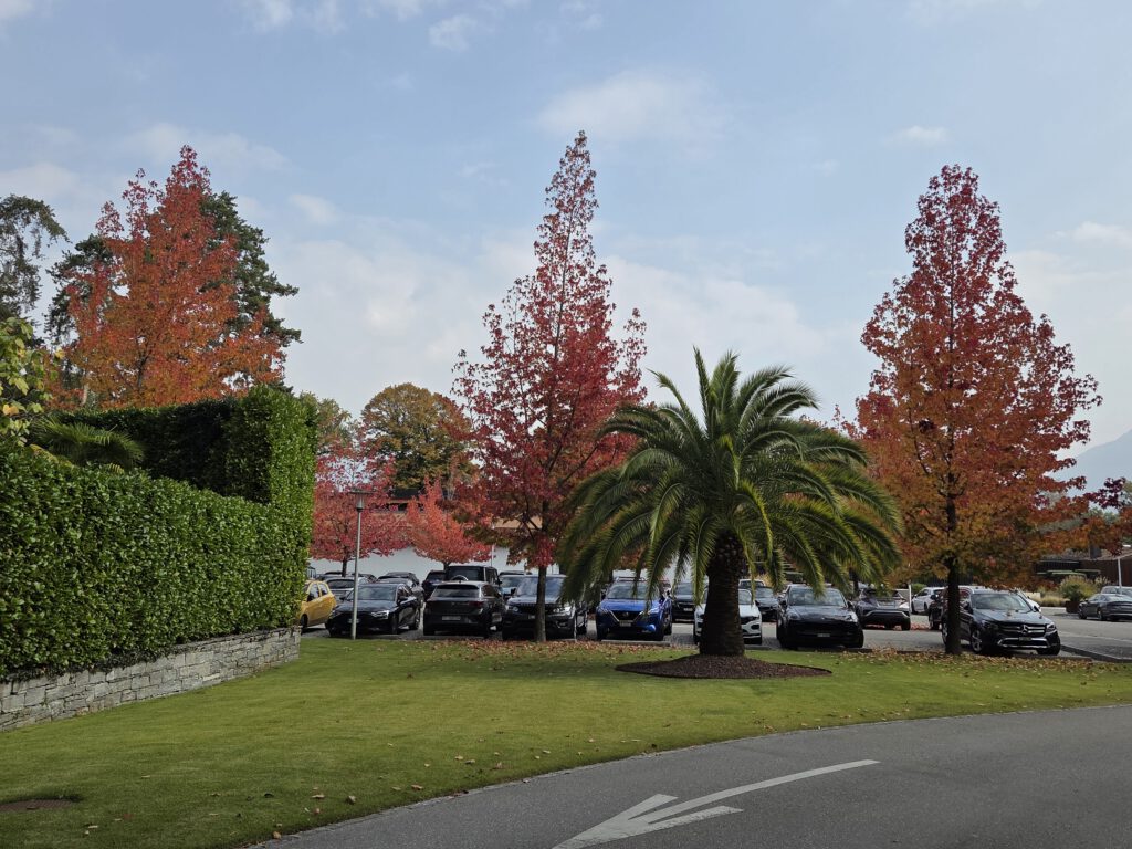 Ein lauer Herbsttag. Die Reiseleitung holt in Sandalen und T-shirt Brötchen im nahe gelegenen Denner-Markt (der ein eigenwilliges Sortiment hat). Die italienischen Schweizer schlagen derweil den Anorakkragen hoch ... Wir frühstücken gemütlich, der Nachwuchs schafft es, sich selbst bei zwei Badezimmern um die richtige Zuteilung zu streiten. Und irgendwann sind wir endlich aus dem Haus.