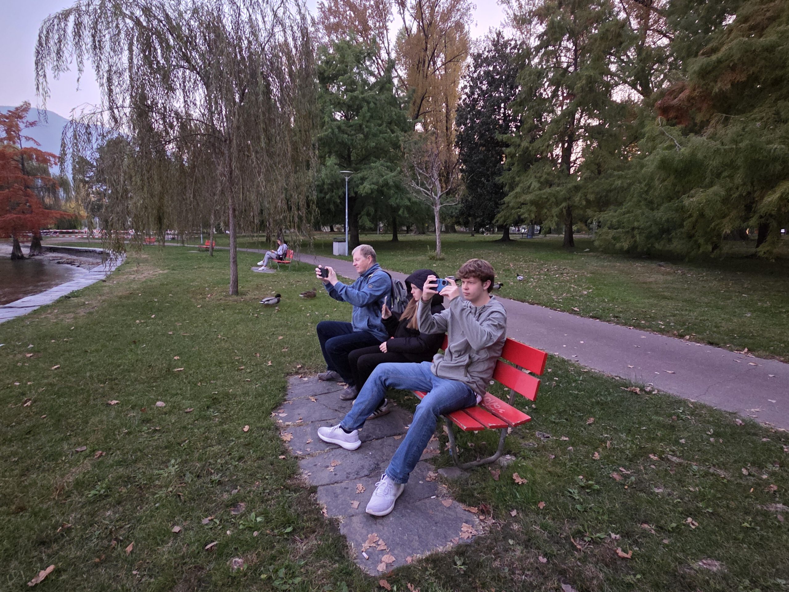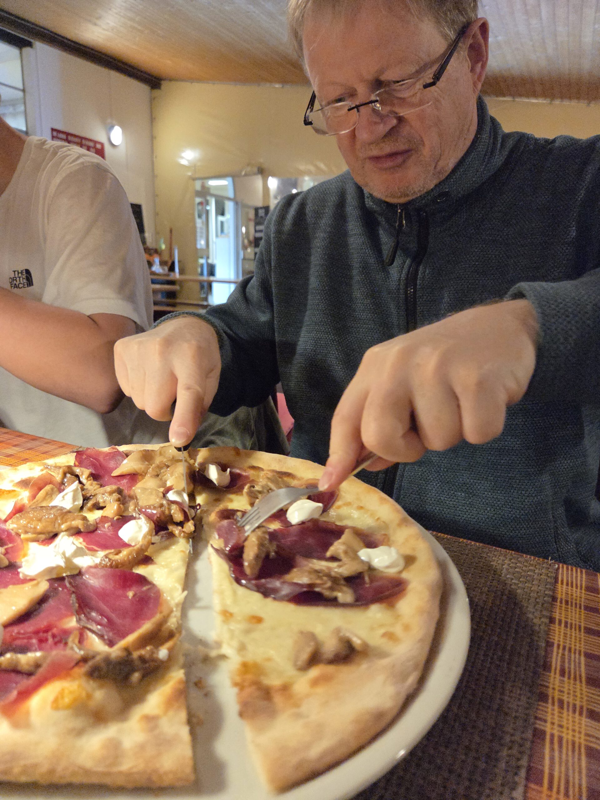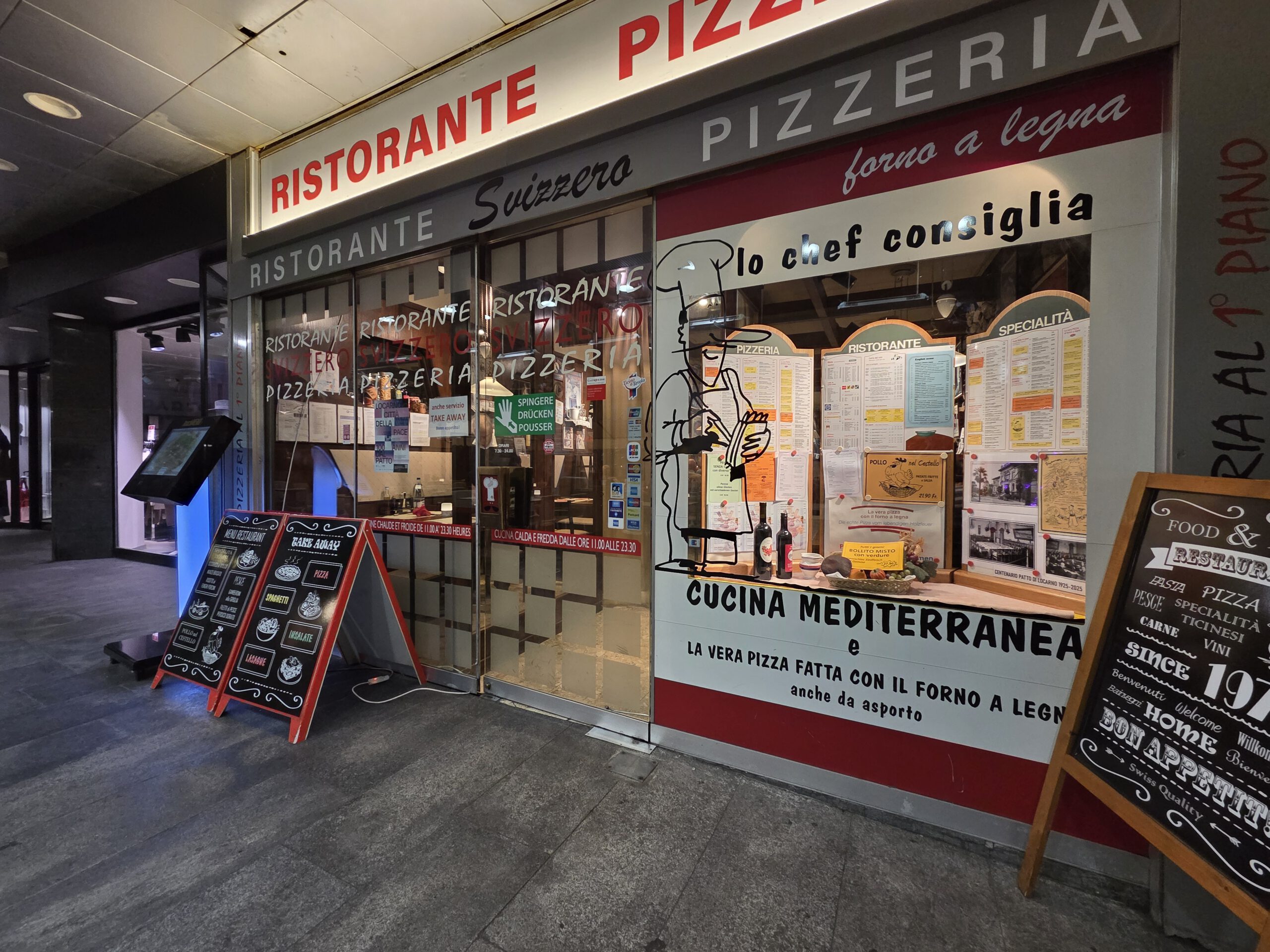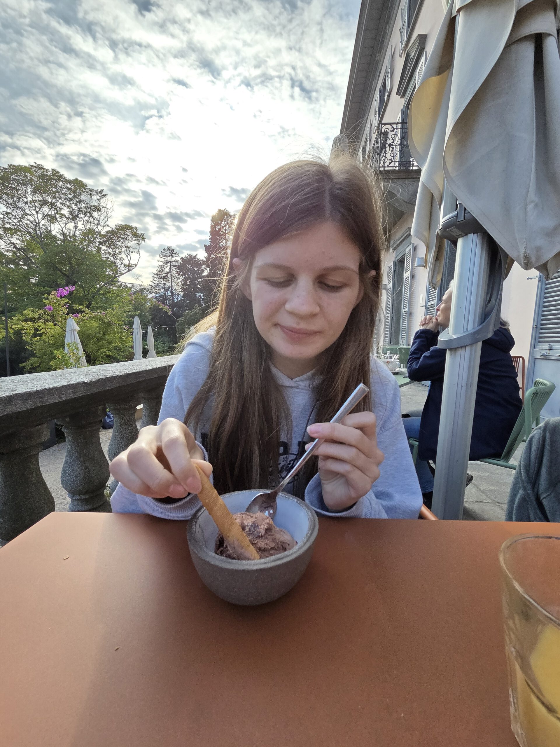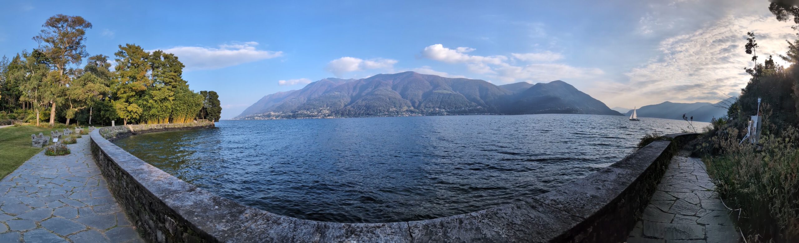 .... Und auf der einstündigen Bootsfahrt zurück nach Locarno stellt sich unter großem Gelächter der Familie heraus, dass sich das Gewächshaus auf einer anderen Insel befindet. Also nicht auf der Insel Brisago, sondern auf den Borromäischen Inseln. Die befinden sich auch im Lago Maggiore, aber deutlich südlicher. In Locarno wählen wir eine Pizzeria, die von drei älteren Herren und einer älteren Dame betrieben wird. Dort gibt es Nudeln und Pizza mit Steinpilzen, aber auch eine kleine Portion Spaghetti und eine Minestrone. Was uns mit der überteuerten Wasserflasche wieder komplett versöhnt.