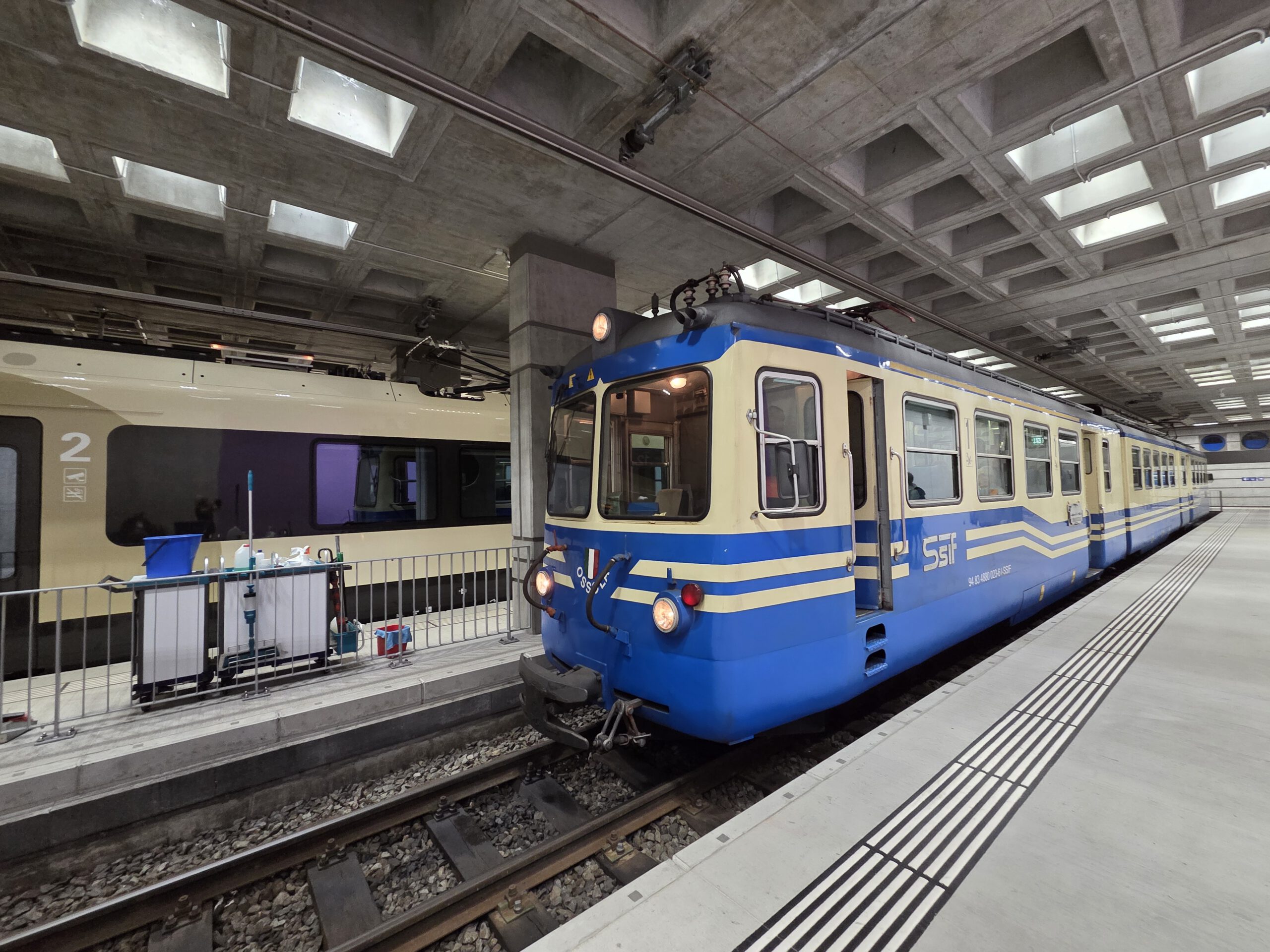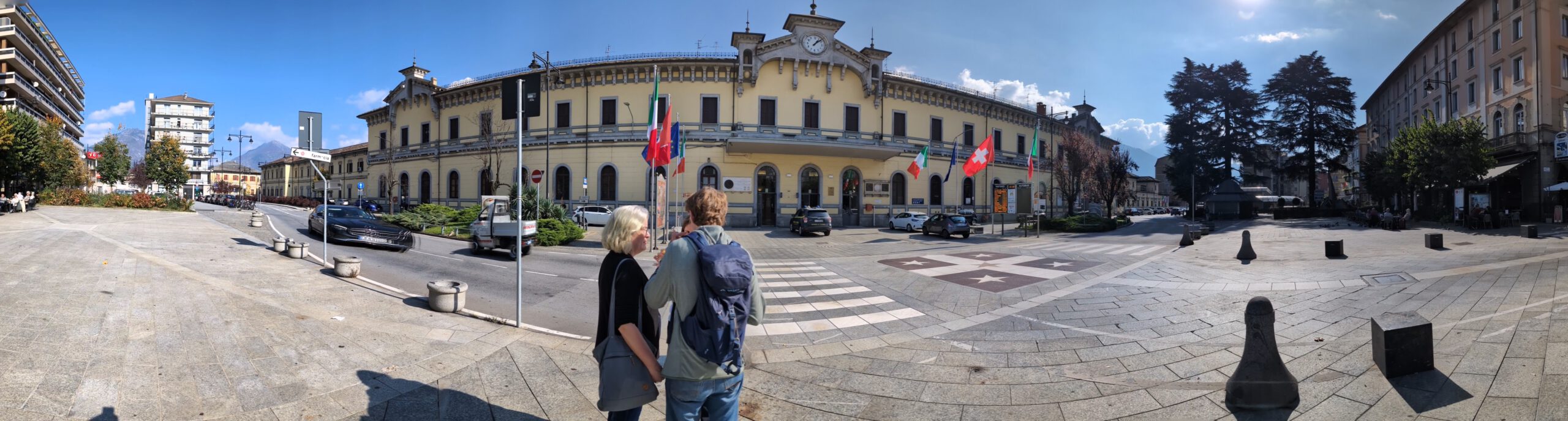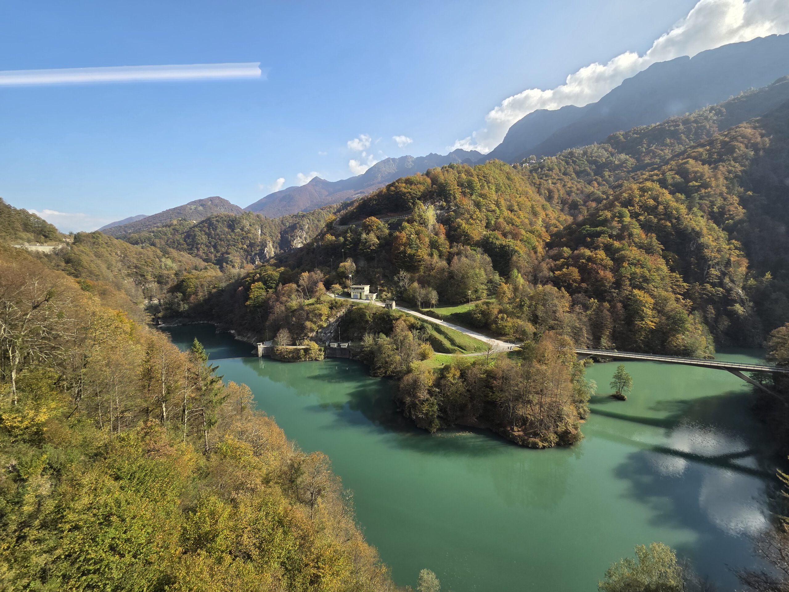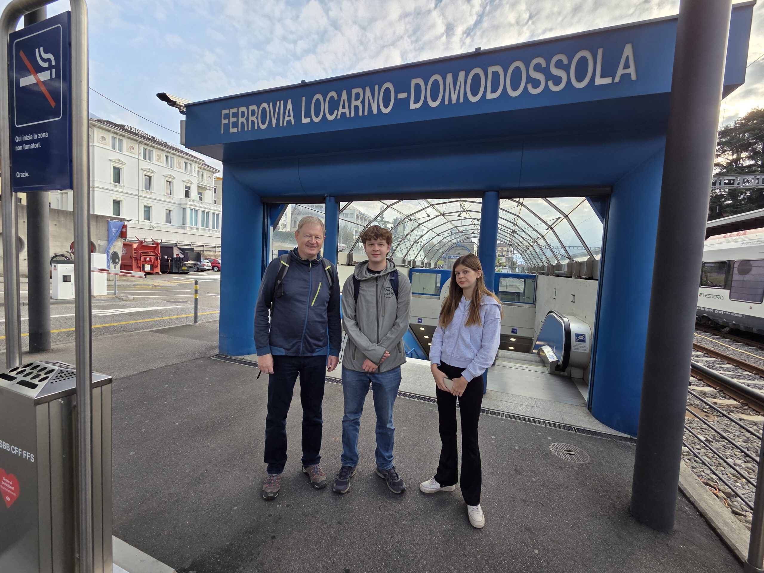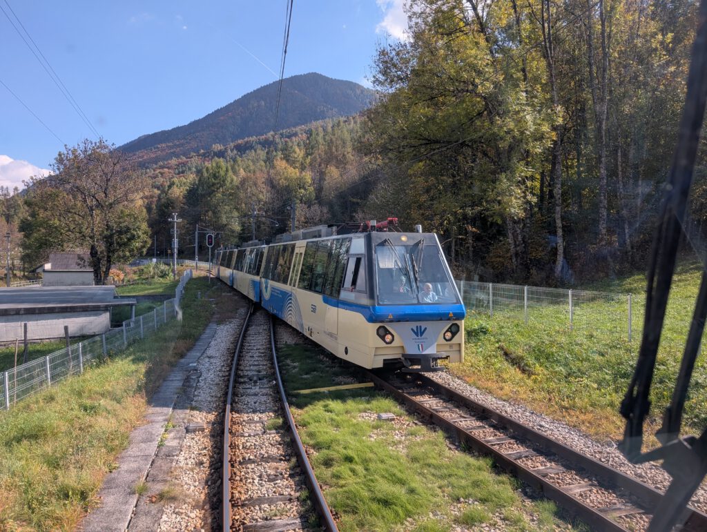 ... Am Mittwochabend wissen wir, warum die Frau am Ticket-Schalter so beeindruckt war. Zuvor hatte der Tag vergleichweise früh begonnen, schon um kurz nach 9 Uhr sind wir unterwegs zum Bahnhof. Dort startet um 9.51 Uhr unsere Fahrt mit der Centovalli-Bahn, die Locarno und das italienische Domodossola verbindet. Innerhalb von zwei Stunden gibt es 83 Brücken und 31 Tunnel, die Strecke gilt als eine der schönste der Welt. Der Stadtbahnhof ist inzwischen unterirdisch und im Vergleich zur 102 Jahre alten Zuglinie eher futuristisch. Die Hinfahrt verbringen wir auf unseren reservierten Plätzen in einem der ganz alten Züge, der viel Flair, aber auch viel Lärm zu bieten hat. Sehr entschleunigt, viel Herbstlaub, Wasserfall, Flussausblick, Bauarbeiter usw. Es wird nicht langweilig.