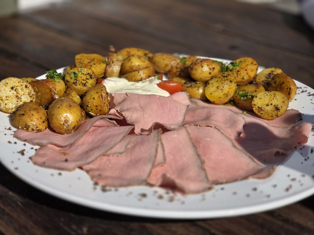Ein vergleichsweise ruhiger Tag. Zum einen pocht der Nachwuchs darauf, dass gerade Ferien sind und man nicht zu Unzeiten aufstehen muss. Zum anderen schmökert sich die Reiseleitung gerade an einem spannenden Krimi fest (Martin Walker, Im Chateau) und hat nach dem steilen Abstieg am Vortag vor allem Muskelkater. Was sie nicht davon abhält, Brötchen zu holen.
