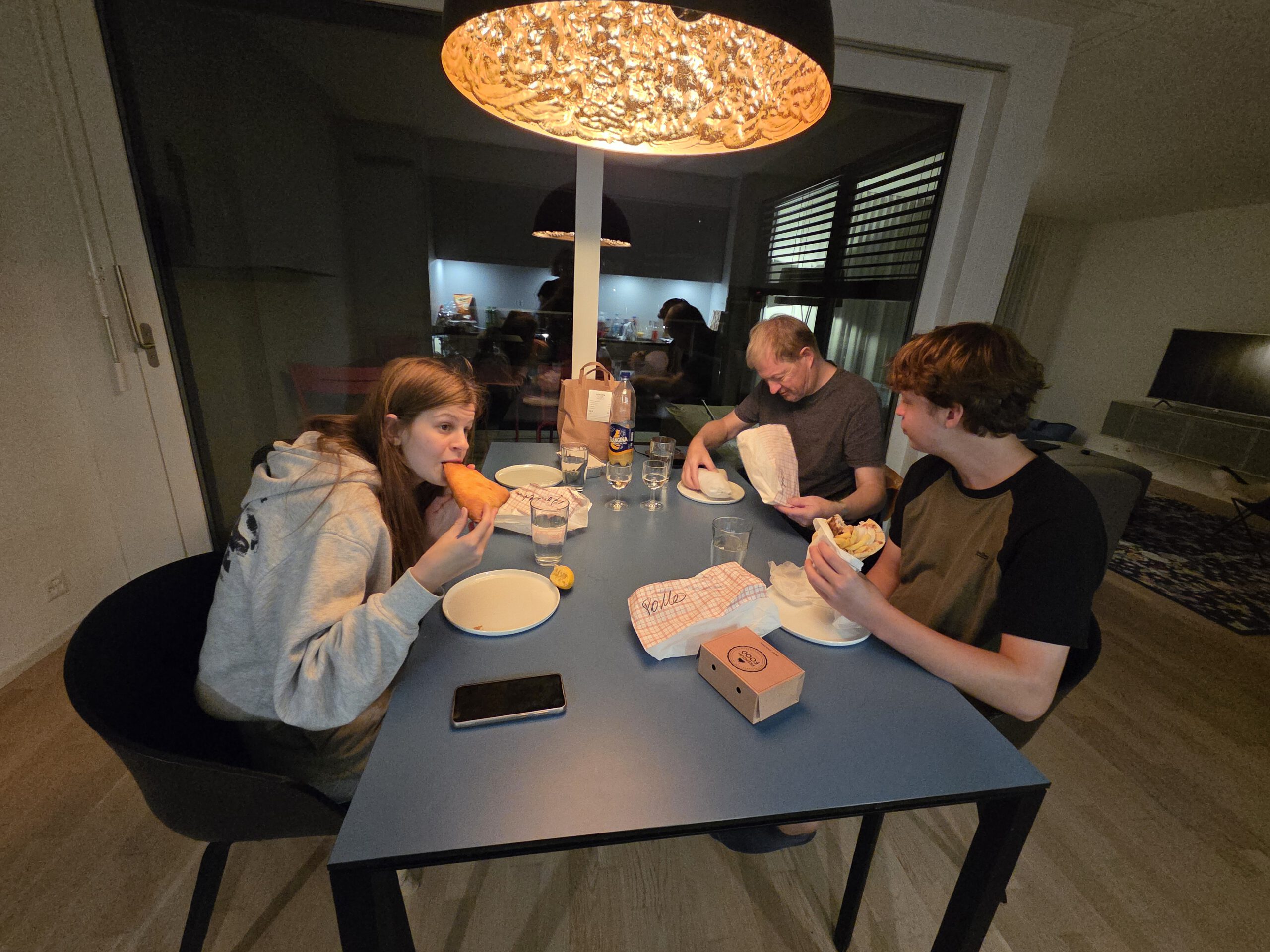 Um 19.30 Uhr ziehen Kilian und Nicole los, um beim Griechen um die Ecke Abendessen zu holen. Ah, nur Barzahlung ... Beide bekommen den Weg zum Geldautomaten eindringlich erklärt, haben ihn aber zwei Straßenecken weiter vergessen. Fragen sich durch, verlaufen sich wieder und bekommen am quasi dritten Automaten die ersten Schweizer Franken des Urlaubs. Als Dank für den langen Fußweg gibt es dafür beim Griechen einen Nachtisch geschenkt. Und morgen soll es regnen.