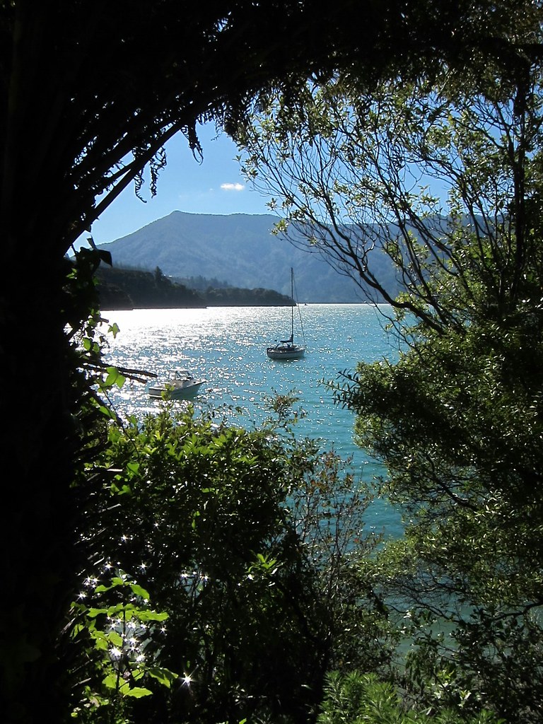 Bisher war es immer so, dass es immer noch spannender wurde, als gedacht. Als wir in Melbourne waren, dachten wir, dass Sydney doch garnicht so viel aufregender sein kann. Nach drei Wochen Australien hatten wir schon das Gefühl, eigentlich direkt heimfliegen zu können, so viel hatten wir schon erlebt. Und jetzt können wir uns nach drei Wochen auf der Nordinsel Neuseelands kaum vorstellen, dass uns noch etwas auf der Südinsel umwehen soll, schließlich waren Regenwald, Vulkane und Geysire doch schon beeindruckend genug. Dabei sagt jeder, wirklich jeder Kiwi, dass die Südinsel so wild, so unglaublich, so toll sein soll. Doch kaum fahren wir in den Charlotte Sound - den langen Fjord, an dessen Ende Picton liegt - ein, stehen Gerald und ich an Deck und sagen nur: Wow. Trotz sehr tiefer Wolken eine Landschaft wie gemalt. Allerdings können wir Kilian und Louisa noch nicht so ganz den Reiz von ¨Schau mal der Hügel da¨ und ¨Hast du die Bucht dort gesehen?¨ vermitteln, so dass es irgendwann doch nach drinnen geht.