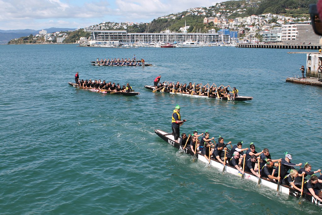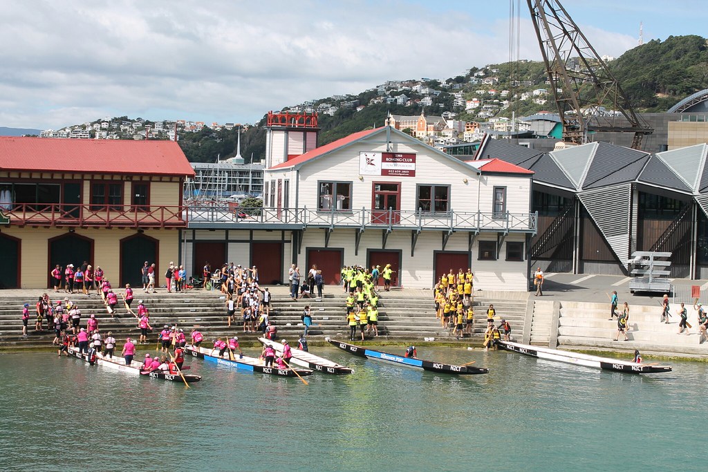 Als windy wellington ist die Stadt bekannt und so lernen wir sie auch kennen: Stets eine steife Brise. Aber immerhin bei Sonnenschein. Wir bummeln gemütlich am Hafen entlang. Die Waterfront wurde in den vergangenen Jahren rausgeputzt und so reihen sich schicke Lokale aneinander, große Lagerhallen mit Kajak-Ausrüstung oder der Start/Landeplatz für drei Helikopter. In bester Lage am Wasser: Ein Spielplatz mit Rutsche und Schaukeln, daneben ein kleiner Wagen mit Kaffeeverkauf - mehr brauchen wir erstmal nicht.Außerdem gibt es ja viel zu Gucken: Die Helis heben nacheinander ab, eine Schulklasse paddelt mehr oder weniger erfolgreich in Kajaks vorbei, die Fähren legen ab.