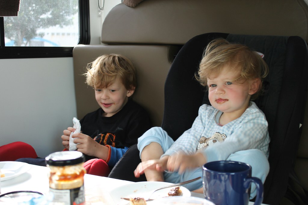 Dort treffen wir - die dänische Familie, die wir schon aus Wahei und Rotorua kennen. Und wir lernen Sina und Jens aus Jena kennen, die mit Arwin und Anouk unterwegs sind. Genau: Elternzeit. Nach dem Essen in der Großküche (mit sehr vielen sehr leeren Schränken. Wir sehnen uns nach dem kuschligen kleinen Zeltplatz in Martinborough!) Treffen wir die Thüringer noch auf eine Runde toben im Spieleraum.