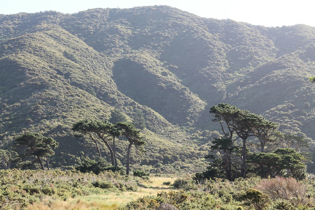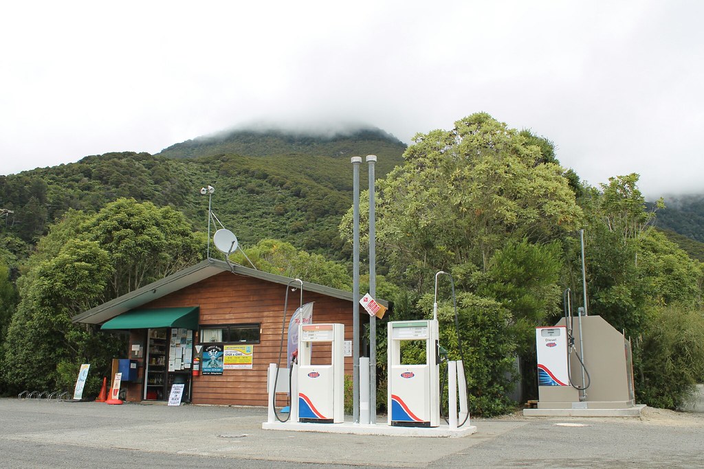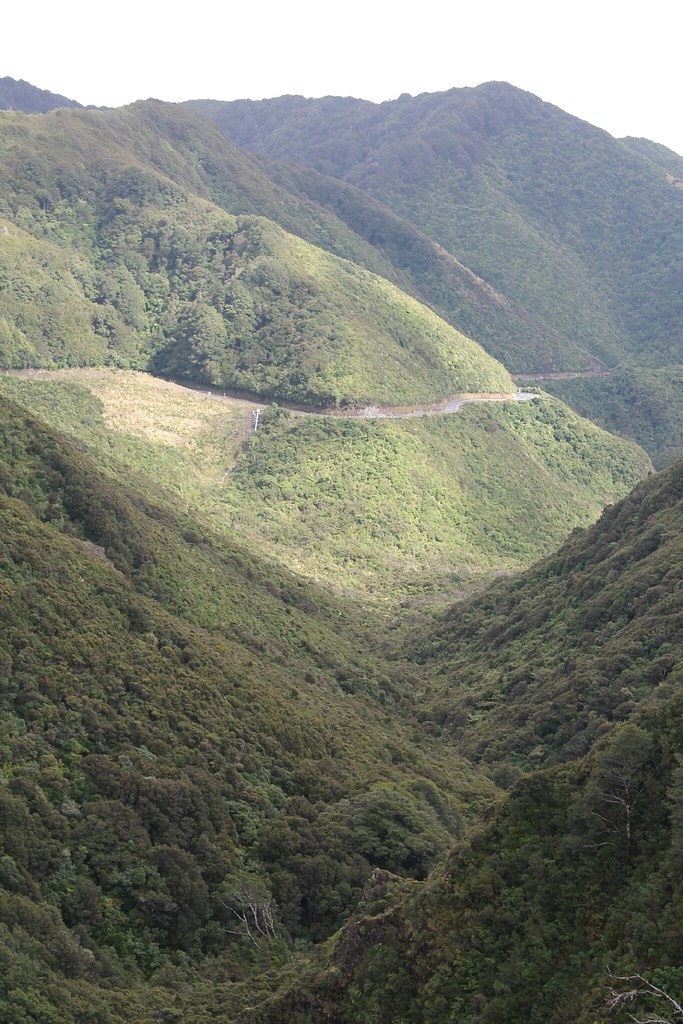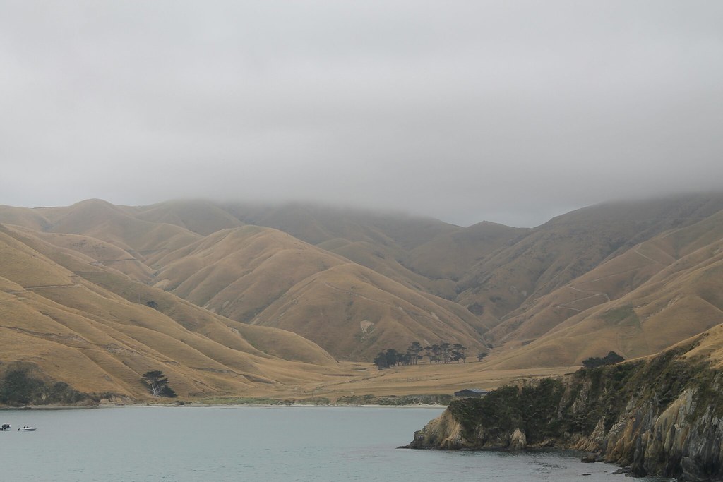 Der Wetterbericht verkündet: Strahlender Sonnenschein! Genau jetzt, genau da, wo wir sind! Allerdings bekommen wir davon nichts mit, weil die Wolkendecke gerade an das Dach vom Wohnmobil kratzt. Wir fahren also durch leichten Niesel - den es in der Region angeblich schon seit Januar nicht gab, weshalb sehnlichst auf Regen gewartet wird. Die Landschaft ist schon kurz hinter den Buchten fast wie das Voralpenland. Allerdings wird hier heftigste Forstwirtschaft betrieben, so dass die Hügel voller Nutzwald, frisch abgeholzt oder schon wieder zart bewachsen sind. Nicht immer ein schöner Anblick. Andererseits haben wir in den vergangenen Wochen so wenig Gewerbe, geschweige denn Industrie gesehen, dass man es den Kiwis auch nicht verübeln kann.