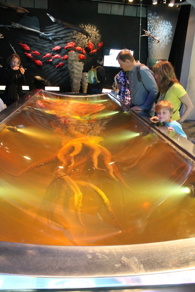 Dazu gehören unter anderem eine begehbare Landkarte, Hintergründe zu Vulkanen und Beben und die hiesige Flora und Fauna. Ein ausgefallenes Exponat: Ein Riesentintenfisch, in Formaldehyd konserviert, unter einer dicken Plexiglasschicht zu bestaunen. Der Oktopus wollte nicht von einem Fisch lassen, der von einem Boot gefangen worden war, blieb freiwillig knapp unter der Wasseroberfläche und ist deshalb schnell gestorben. Für uns Museumsbesucher ein Gewinn: Man kann den Schnabel (ja: Tintenfische haben einen Schnabel. Das wussten drei von vier Mitglieder der Reisegruppe vorher aus nicht) bestaunen und angesichts der fußballgroßen Augen (!!) kurz die Luft anhalten.