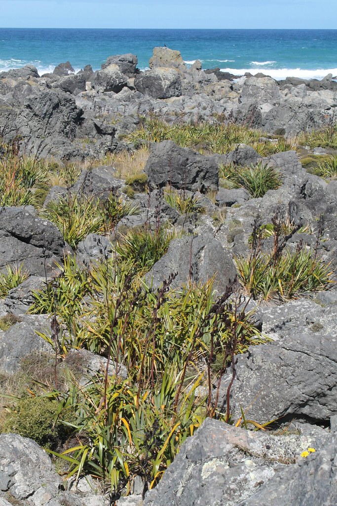Wir wandern drei Stunden an der Küste entlang, ein gepflegter Trail mit der vagen Möglichkeit, Robben zu sehen. Der Sturm hat auch hier seine Spuren hinterlassen, wir finden Seepflanzen mit meterlangen Blättern, die dick und ledrig fest sind. Zuerst sehen wir ein totes Schaf. Gerald und Kilian entdecken später immerhin eine Robbe.