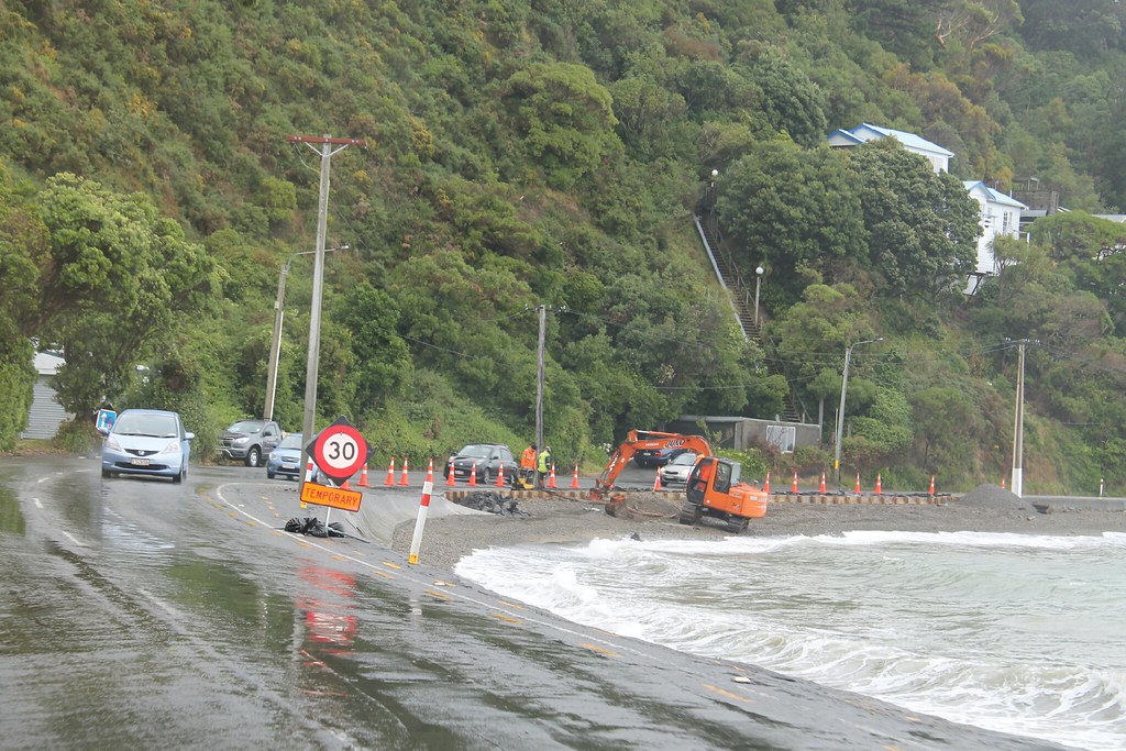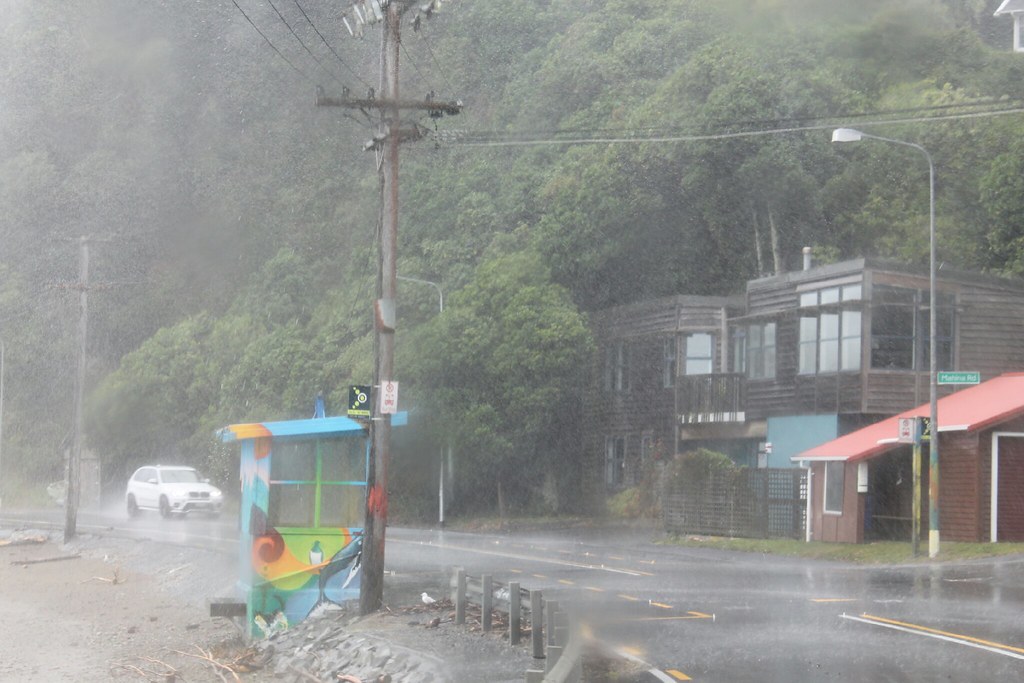 Doch dann fahren wir in dicke Wolken. Wir orten kurz den Zeltplatz in Lower Hutt, einem Vorort. Aber es stürmt gerade so, dass wir erstmal an der Küste entlang weiterzuckeln.