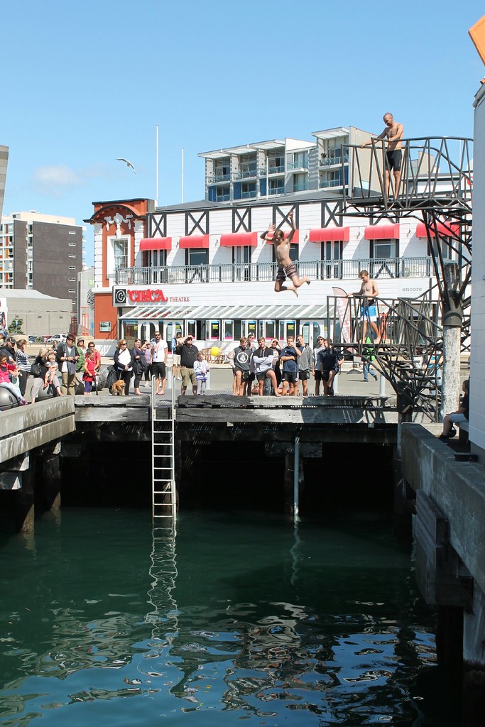Danach beobachten wir, wie sich junge und nicht mehr ganz so junge Jungs unter dem Applaus der Zuschauer von einem Sprungturm ins Hafenbecken stürzen -mal elegant, mal mit zugehaltener Nase.