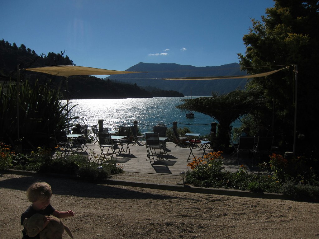 In Days Bay sehen wir ein kleines Cafe und huschen rein. Es ist einigermaßen warm, Kilian und Louisa finden spannende Such-Bücher - da bleiben wir doch gerne länger. Als wir irgendwann dann doch aufbrechen müssen, kommt noch kurz die Chefin. Sie will dann doch wissen, wo wir eigentlich herkommen und entschuldigt sich für das Wetter.