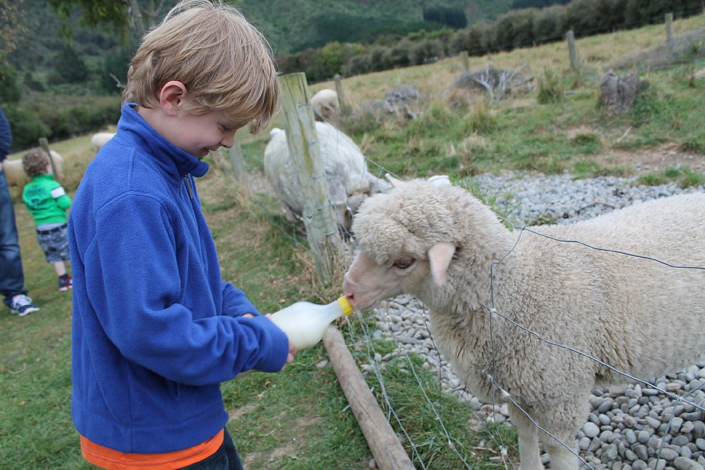 Der Nachmittag vergeht superentspannt mit Schafe füttern, Schafe streicheln, Wäsche waschen, Schaukeln - die ländliche Idylle tut nach dem Stadtparkplatz in Wellington uns vier sehr gut. Zum Abendessen sind eigentlich Bratwürste auf dem BBQ geplant (Barbeque: Ein Wort, das Louisa direkt in ihren aktiven Wortschatz übernommen hat. Genauso wie Singapur und Melbourne), doch dann sehen wir, dass ein fahrbarer Pizzaofen anrollt. Kerstin aus Pegnitz ist vor dreizehn Jahren mit ihrem Mann auf die Südinsel ausgewandert und bewirtet seit drei Jahren Zeltplatzgäste mit leckeren Pizzen und Flammkuchen - da greifen wir doch gerne zu. Tatsächlich ist es die erste Pizza in diesem Urlaub, die italienisch schmeckt!