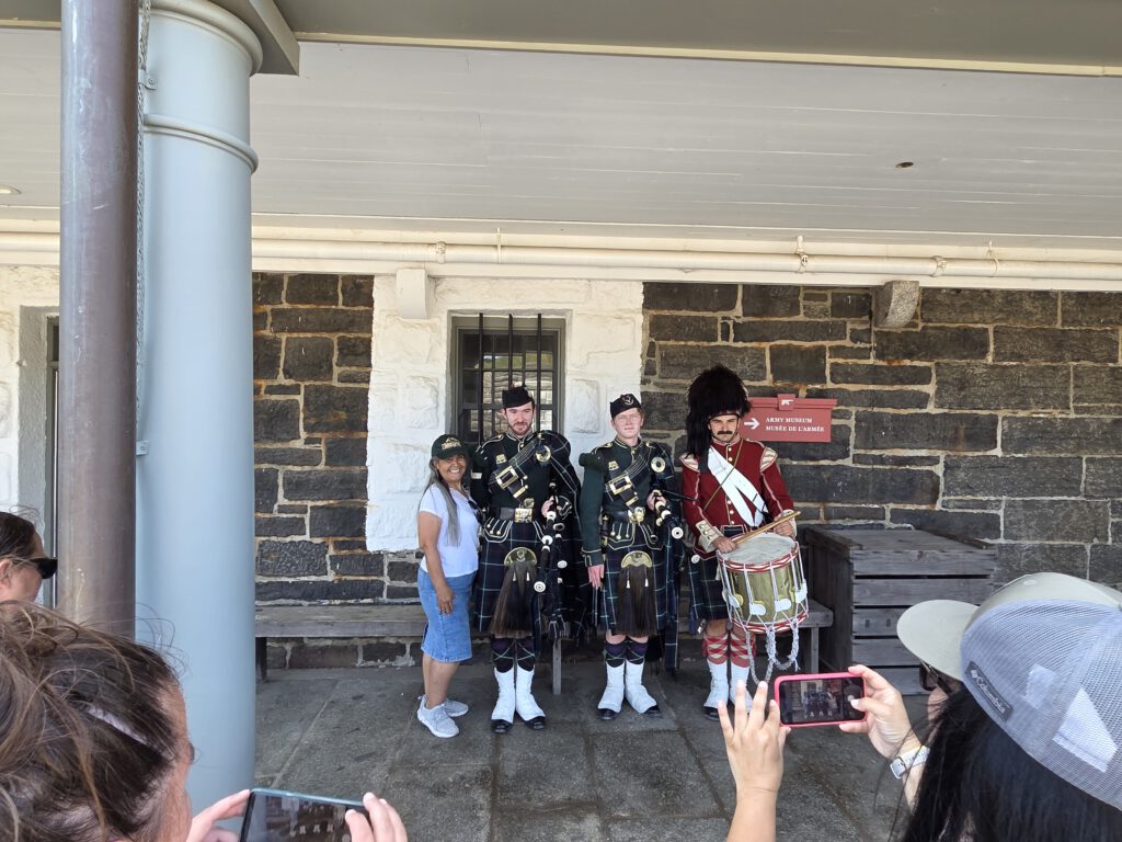 Die Schotten haben hier ihre Spuren hinterlassen: Sie stehen Wache, informieren über das Leben im Fort, feuern einen Kanonenschuss ab, spielen Dudelsack und trommeln. (In den Kilts stecken auch Studenten der lokalen Unis, heißt es im Reiseführer.) Ein sehr unterhaltsames Spektakel, mit einem Dudelsackkonzert, für das die Instrumente vorher lautstark gestimmt werden mussten. Ein Film informiert außerdem über die Geschichte von Halifax, das dank seines natürlichen, stets eisfreien Hafens auch in den Weltkriegen eine große Rolle spielte (diesmal: die britische Seite der Geschichte ... Hier ist übrigens wieder alles Englisch und Französisch.)