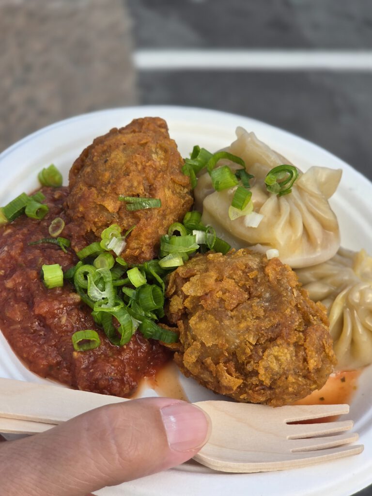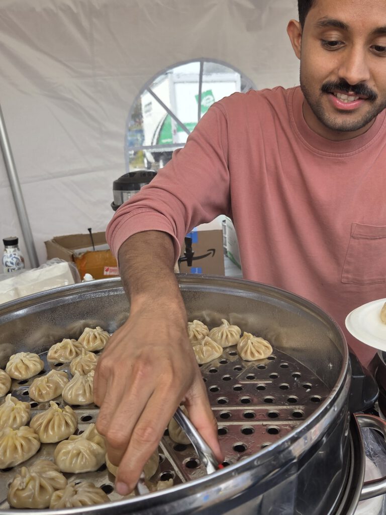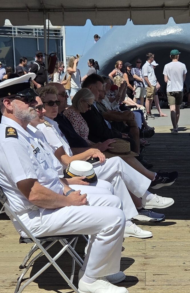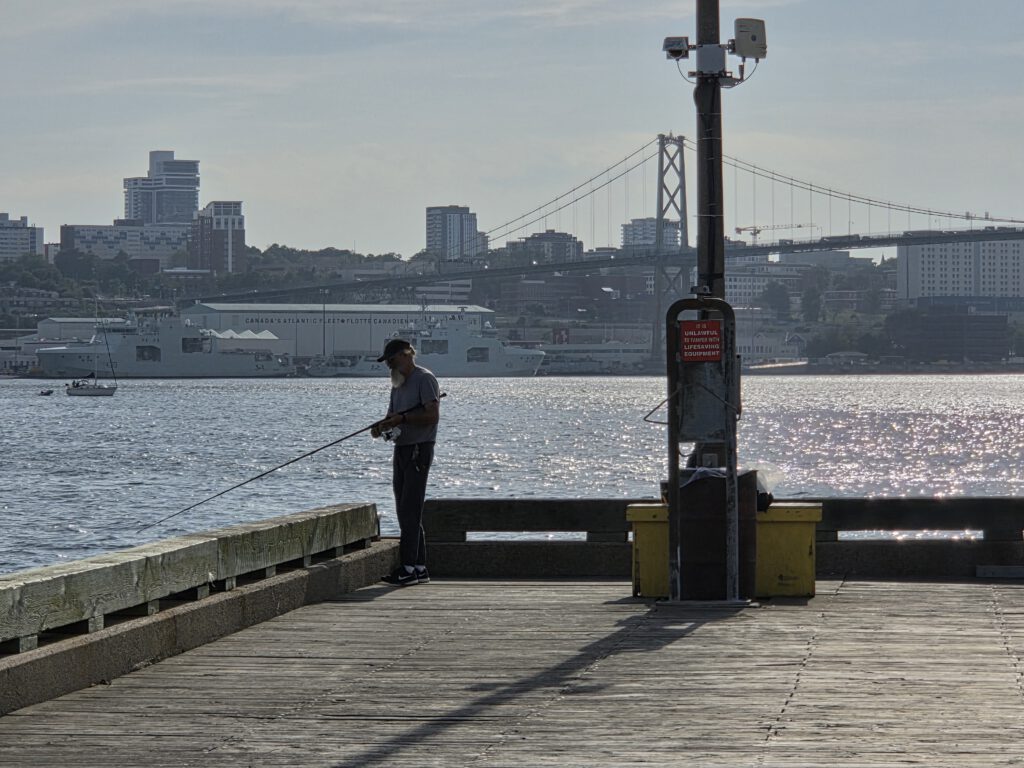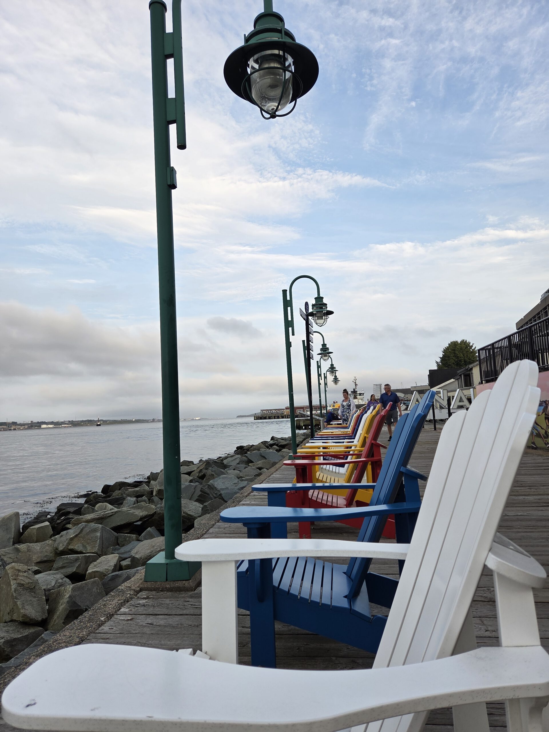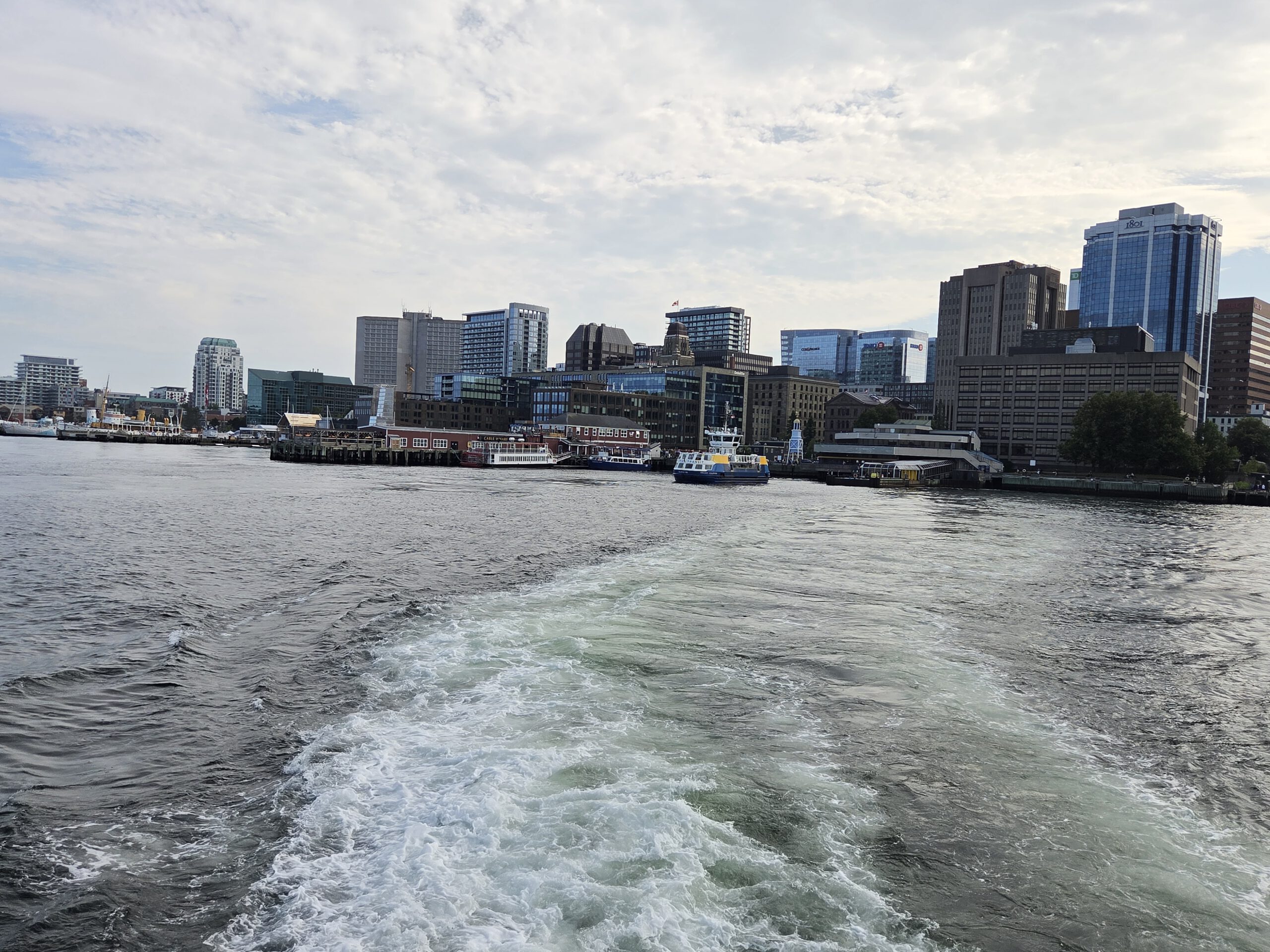 Am späten Nachmittag nehmen wir die Fähre auf die andere Seite der Bucht. Eine günstige Fahrt auf einem kugeligen Schiffchen, die Bezahlungsweise ist jedoch wahlweise irgendwie antik (Bargeld in große Flaschen werfen) oder sehr modern (per Halifxapp). Einerseits ging es um den Blick auf die Skyline. Andererseits startet dort praktischerweise gerade das Nova Multifest, ein Festival, das mit Streetfood und Musik die Vielfalt feiert. Nun, die Reisegruppe meutert erst gewaltig. Aber ... Natürlich schmeckt das nepalesische/vietnamische/... Essen dann bestens. Gäbe auch viel philippinisch, weil es da wohl eine große Community gibt. Etwas Wartezeit auf die Frühlingsrollen, weil der Strom ausfällt. Auf der Bühne erst feiner Jazz, dann eine indische Nummer, die wir garnicht verstehen, die aber die indische Gemeinschaft sehr begeistert. Als wir zur Fähre zurück eilen, kommt gerade der Gouverneur von Nova Scotia an.