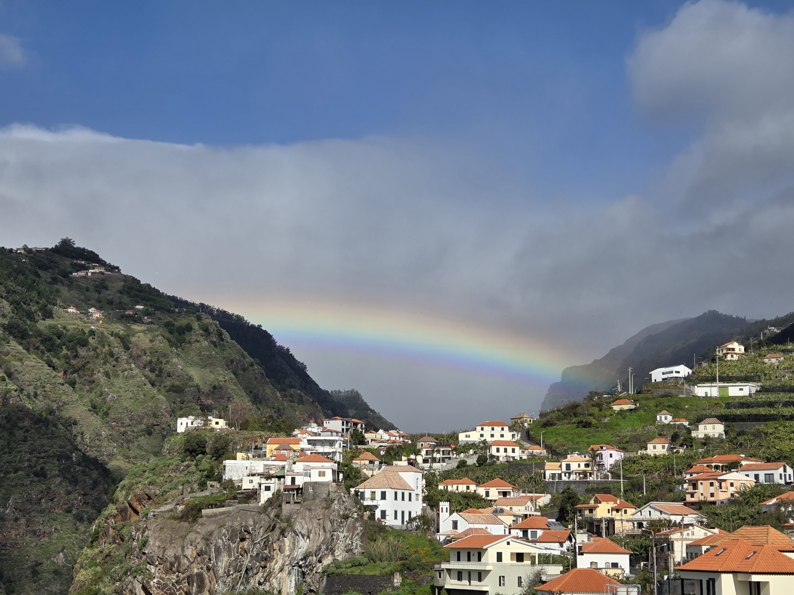 Nachts stürmt es, nachts regnet es. Morgens nieselt es und frisch ist es auch. Aber: die Klimaanlagen können auch heizen ... Und ganz hervorragend unsere Wäsche trocknen. Nicole schmökert sich weiter fest, in einem Krimi, den sie in der Vila Clementina im Regal gefunden hat. Louisa und Gerald lernen Mathe. Kilian chillt. Allerdings müssen wir noch einmal nach Funchal zu unserer ersten Unterkunft: Kilian hatte sein Original-Apple-Kabel dort vergessen, Vermieter Pedro hatte schon am Freitag zugesagt, es im zugänglichen Briefkasten zu deponieren. Doch als wir am frühen Nachmittag dort ankommen - ein leerer Briefkasten. Pedro bedauert, dass das Kabel noch nicht drin liegt, verspricht aber zu schauen...