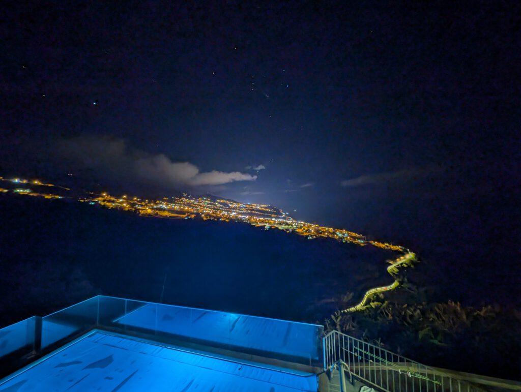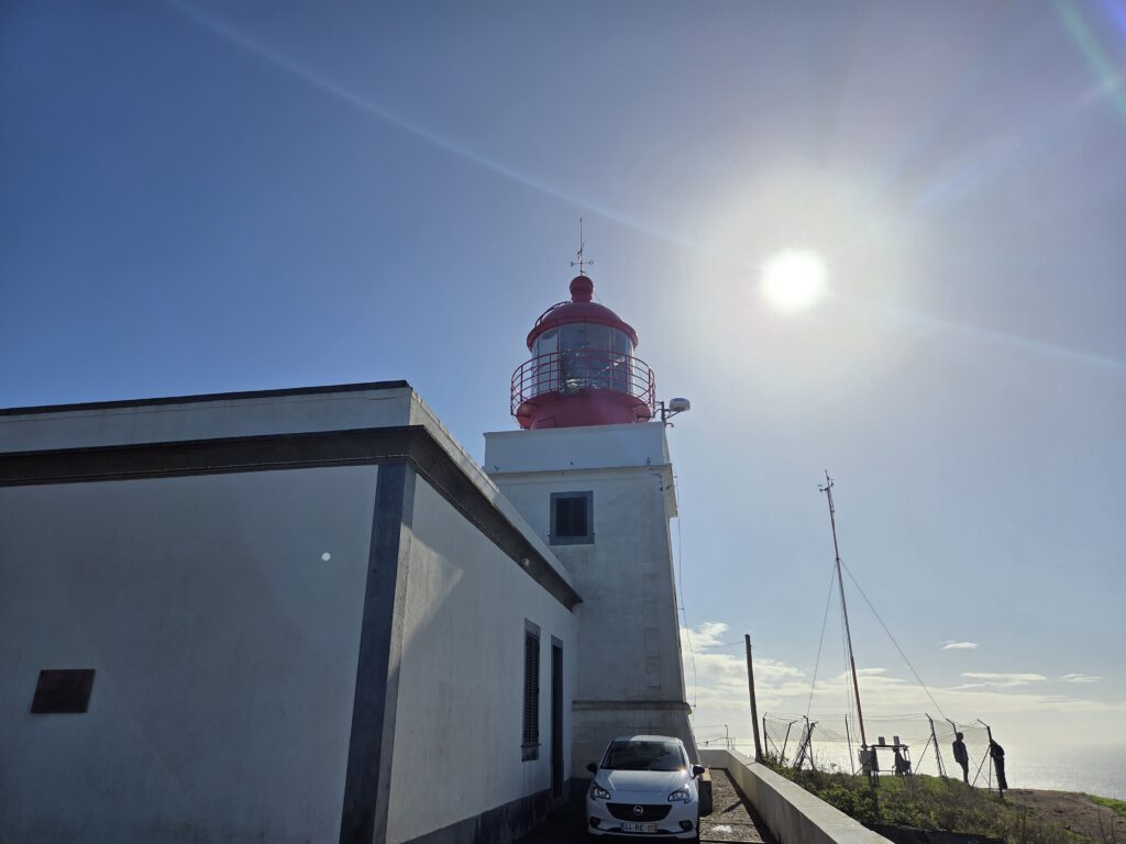 Doch vor uns liegt noch über eine Stunde Rückfahrt und wir sind ziemlich müde. Also noch ein Blick auf einen Leuchtturm und einen Aussichtspunkt, dann übernimmt Nicole das Steuer bis Calheta. Wir bewundern den Sonnenuntergang und gehen an der Promenade wieder in der Pizzeria essen. Voller Mitleid für das benachbarte Restaurant, an dem irgendwie niemand an einem Tisch sitzt. Gegen 21 Uhr sind wir zurück in der Vila, müde und glücklich.