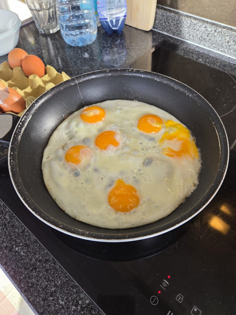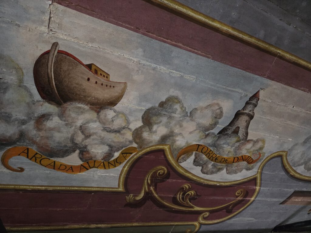 Ein kühler, ruhiger Vormittag. Großes Frühstück mit Kühlschrankresten, denn irgendwie hatten wir noch viele Eier. Mathelernen, erstes Aufräumen. Kurz nach 12 Uhr sind wir unterwegs. Erstmal in die Kirche in Prazeres, bei der man in die Empore kommt und damit den Deckenmalereien ganz nahe. Nebenan pflegt die Kirchengemeinden einen großen Garten, es gäbe auch ein Team House, aber es sind alle sehr mit Aufräumarbeiten beschäftigt, da wollen wir nicht näher stören. Die öffentliche Toilette ist übrigens, wie immer, sagenhaft. Im kleinen Supermarkt nehmen wir noch ein paar Teilchen für unterwegs mit.