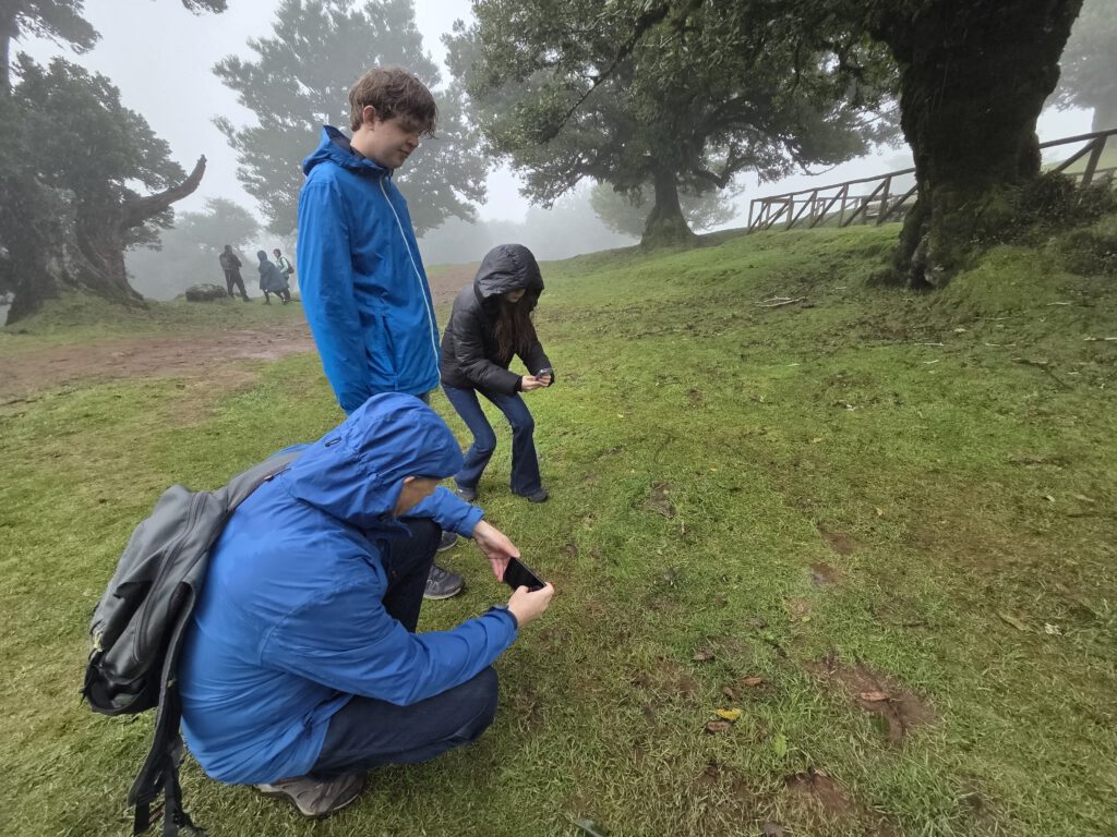 Und wo wir schonmal da sind, würde Gerald gerne wissen, ob der Pico do Arieiro, gut 1800 Meter hoch, eventuell über den Wolken liegt ... Wir fahren also nochmal einige gute Kilometer bergauf, durch immer dichteren Nebel und Dunst, das Thermometer zeigt irgendwann nur noch 2 Grad an. Aber, erstaunlich, auf dem Parkplatz unterhalb von Café und Gipfel stehen an die zehn Autos. Gerald und Kilian huschen kurz zum Gipfel und sichten sogar Wanderer. Louisa und Nicole ziehen das warme Auto vor ... Auf dem Weg nach unten reißt der Himmel wieder auf.