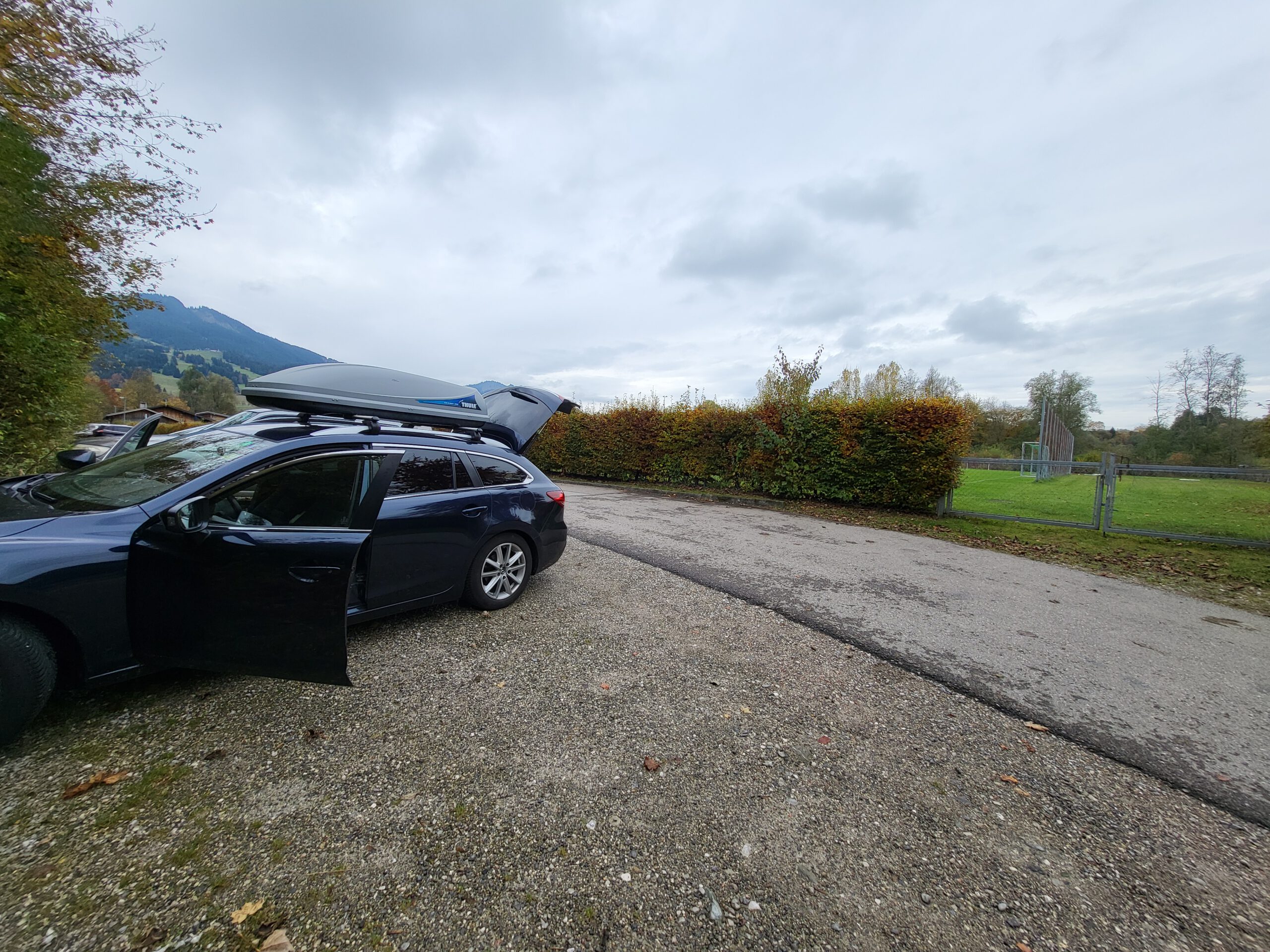 Nach dem langen Stopp ist die Fahrbahn vor uns wunderbar leer. Die restliche Rückfahrt ist hochgradig unspektakulär. Auf dem Fernpass fährt ein Kleinbus aus Großbritannien Schlangenlinien. Wie gut, dass es derzeit Grenzkontrollen gibt und der Fahrer rausgewunken wird. An kleiner Stopp bei Nesselwang, der an einem See enden sollte, führt leider nur zum lokalen Fußballplatz. Immerhin fällt ein Tor, während wir uns die Beine vertreten.